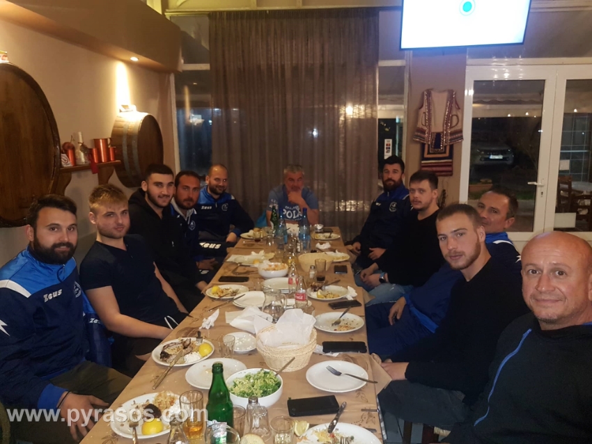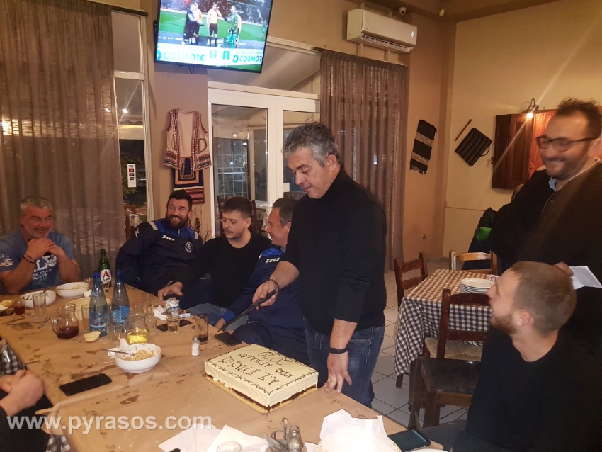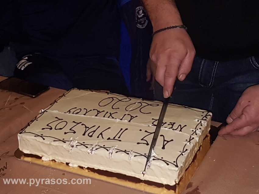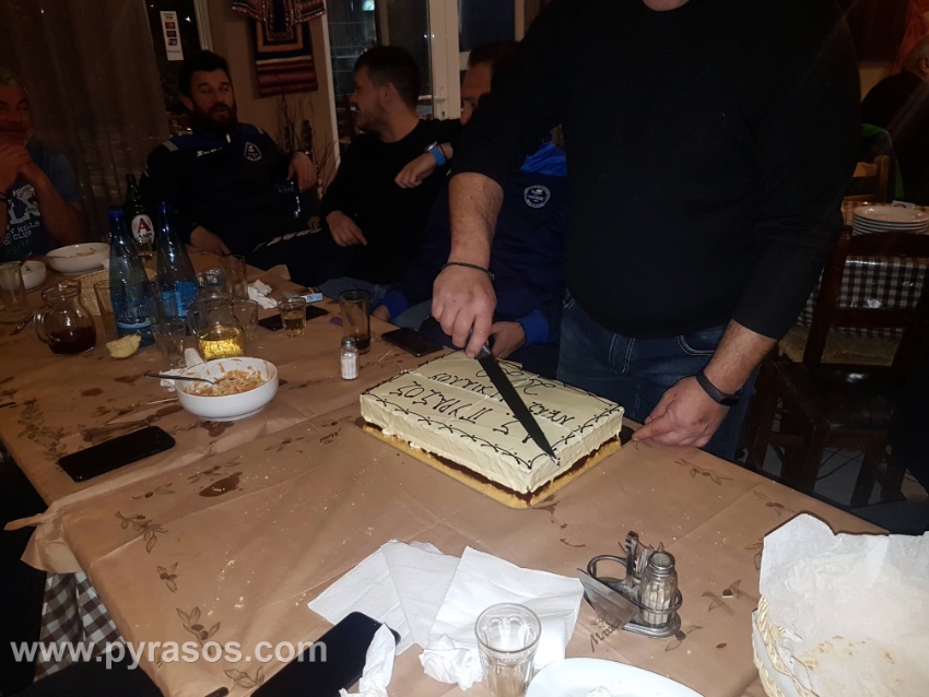 Την κοπή πίτας είχε χθες το βράδυ, Τετάρτη 5 Φεβρουαρίου, η ομάδα μας στην ταβέρνα του κ. Στέκα -τον οποίον ευχαριστούμε για τη ζεστή φιλοξενία- στον πεζόδρομο της Νέας Αγχιάλου. Διοίκηση, προπονητές και ποδοσφαιριστές είχαν την ευκαιρία να μιλήσουν για την πορεία της ομάδας και να περάσουν ευχάριστα τρώγοντας και πίνοντας… Τυχεροί που βρήκαν το φλουρί ήταν οι ποδοσφαιριστές Δημήτρης Καραδήμας και Κώστας Νιφόρος. Ο πρόεδρος του Πυράσου, Χρήστος Ράλλης ευχήθηκε σε όλους υγεία και καλό υπόλοιπο της σεζόν και μεταξύ των άλλων αναφερόμενος προς τους ποδοσφαιριστές, είπε: “Σίγουρα τα αποτελέσματα δεν ήταν αυτά που περιμέναμε μέχρι τώρα, αλλά συνεχίζουμε την προσπάθειά μας. Είμαστε ενωμένοι, είμαστε δυνατοί και πιστεύουμε ότι μπορείτε να τα καταφέρετε. Δείξατε στα τελευταία παιχνίδια μέρος των δυνατοτήτων σας κι εφόσον συνεχίσετε σε αυτό το ρυθμό, με μεγάλη προσέλευση στις προπονήσεις, είμαστε σίγουροι ότι στο τέλος θα χαμογελάσουμε. Η διοίκηση είναι δίπλα σας για ό,τι χρειαστείτε, εκπροσωπείτε ένα μεγάλο σύλλογο και θεωρώ ότι θα πάμε καλύτερα στη συνέχεια της σεζόν”.