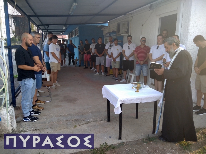 Ο καθιερωμένος Αγιασμός τελέστηκε σήμερα το απόγευμα και άνοιξε η αγωνιστική περίοδος 2021-22 για την ομάδα μας. Στο γήπεδο της Νέας Αγχιάλου, παλιοί και νέοι ποδοσφαιριστές έδωσαν το “παρών” στην πρώτη συγκέντρωση του Πυράσου μας. Μετά τον Αγιασμό, άπαντες κατευθύνθηκαν στην καφετέρια του Λάμπρου Κολώνη για καφεδάκι κι από αύριο Τρίτη, αρχίζουν οι προπονήσεις που θα γίνονται καθημερινά στο γήπεδο του Μαγνησιακού.